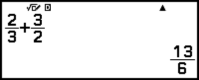 Si vous combinez des valeurs de fraction et des valeurs décimales dans un calcul alors qu’un réglage autre que Smaths/Rmaths est sélectionné, le résultat s’affiche sous forme décimale.