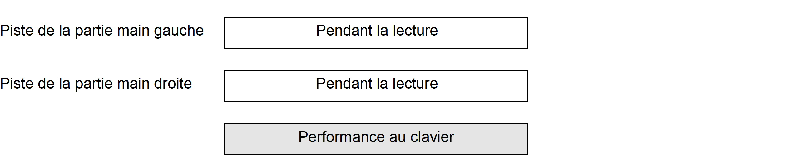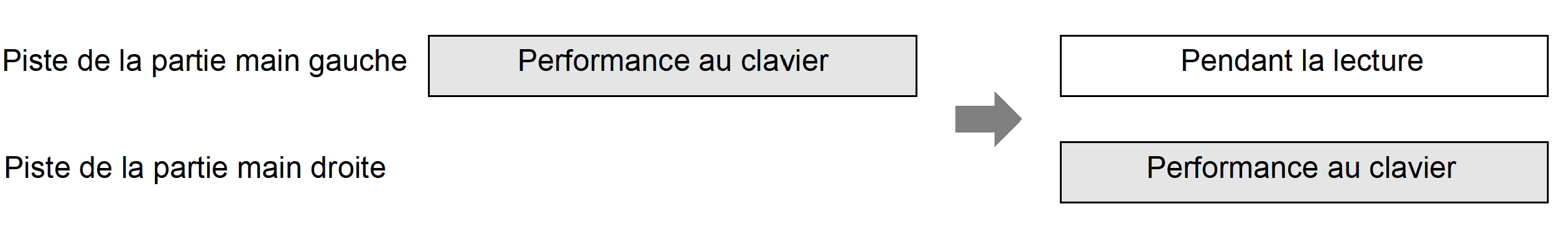 Jouez au clavier accompagné de la lecture de la piste de la partie gauche et de la piste de la partie droite.