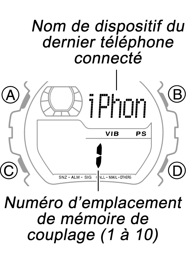 - Lorsque la montre affiche un emplacement de mémoire de couplage accompagné de [NEW], dans la partie supérieure, appuyez sur le bouton B de la montre.