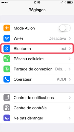 Touchez « Bluetooth » pour activer la fonction Bluetooth.