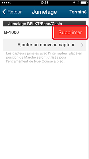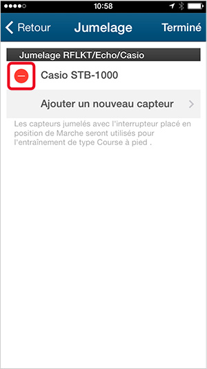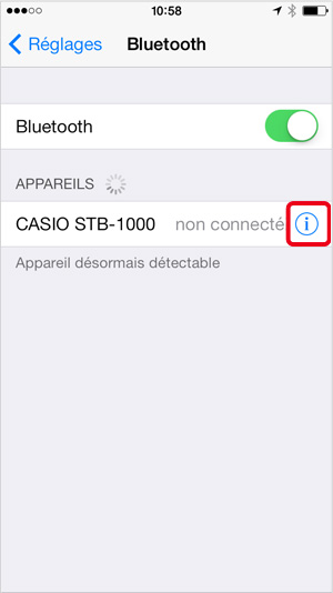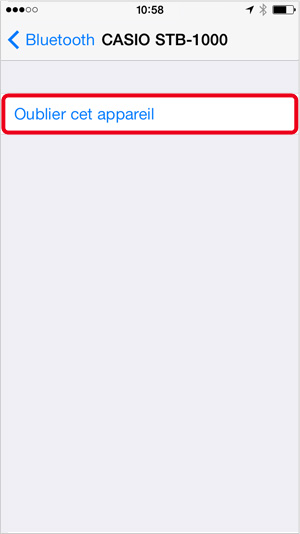 Les informations de couplage sont supprimées lorsque [Casio STB-1000] n'est plus affiché à l'écran.