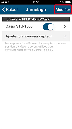 Touchez [Modifier] dans le coin supérieur droit pour supprimer les informations de couplage.