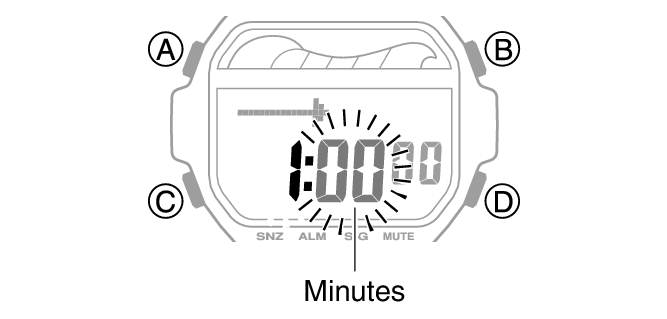 Utilisez les boutons (B) et (D) pour modifier le réglage des minutes de la minuterie.