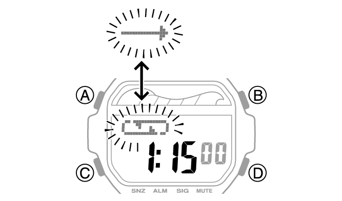 Pendant la configuration du réglage, la montre quitte automatiquement l’opération de réglage après environ deux ou trois minutes d’inactivité.