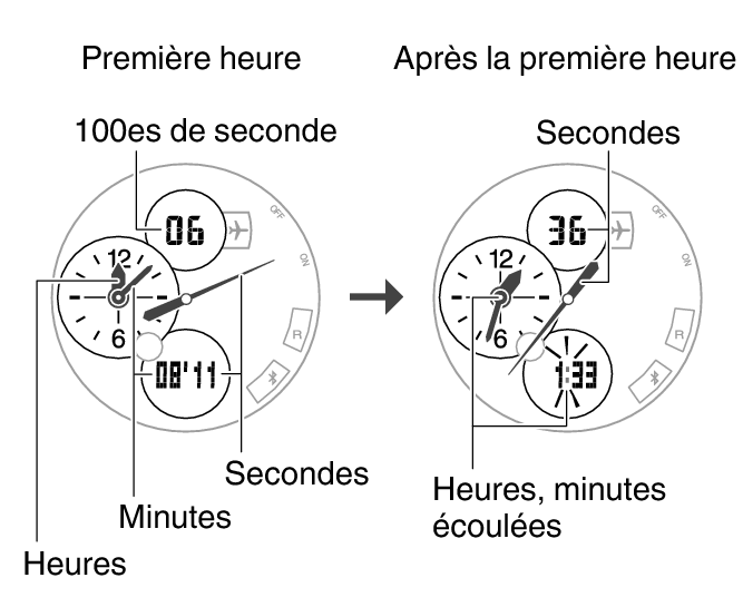 1.Utilisez les opérations ci-après pour mesurer des durées intermédiaires.