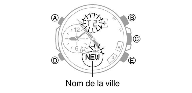 Les petites aiguilles des heures et des minutes indiqueront l’heure actuelle de la ville sélectionnée.