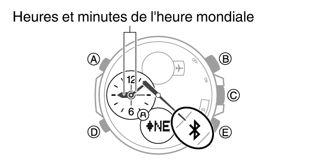 Maintenez le bouton (C) enfoncé pendant environ 0,5 seconde jusqu’à ce que la trotteuse pointe sur le symbole R. -