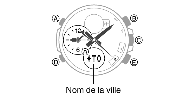 Maintenez le bouton (C) enfoncé pendant environ 0,5 seconde jusqu’à ce que la trotteuse pointe sur le symbole R. -