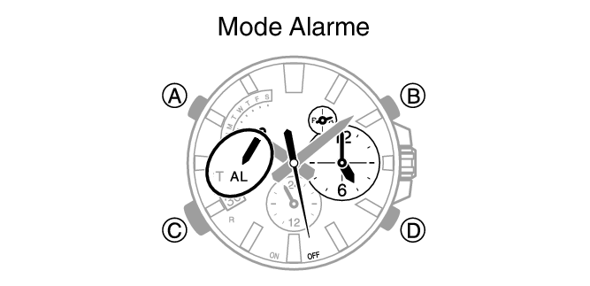 Cette procédure s’effectue en mode Alarme. Utilisez le bouton (A) pour accéder au mode Alarme.