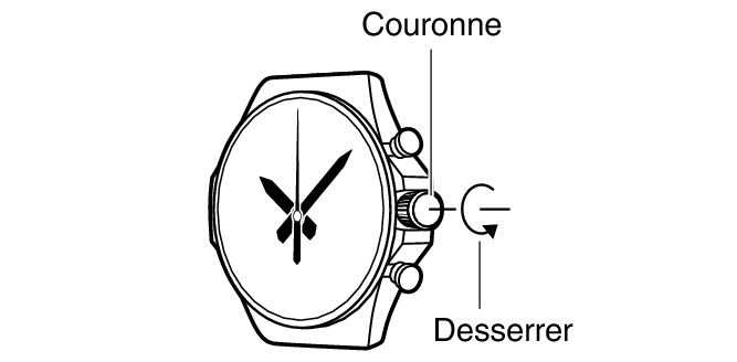 La couronne de la montre est de type vis. Pour utiliser la couronne, vous devez d’abord la tourner vers vous (vers la gauche) pour la desserrer.
