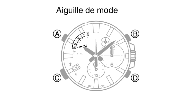 5.Tournez la couronne pour aligner l’aiguille de mode sur SU.