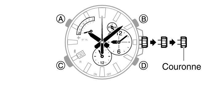 Tirez sur la couronne jusqu’à ce que vous entendiez le deuxième clic. -