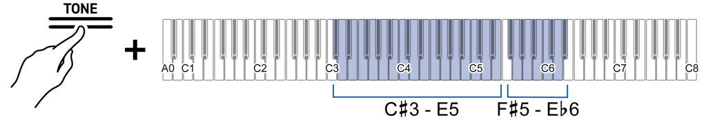 Mantenendo premuto il pulsante “TONE”, premere uno dei tasti da C{3 a E}6.