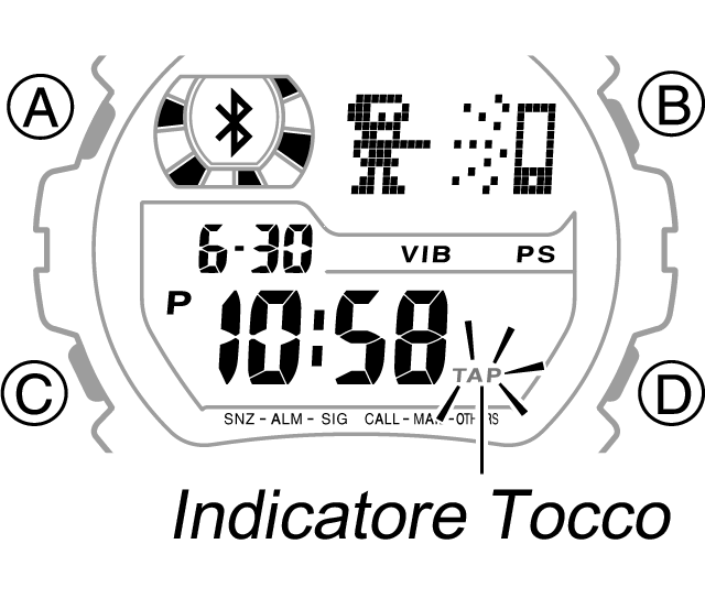 - Nel modo di indicazione dell'ora, tenere premuto il pulsante D per circa un secondo.