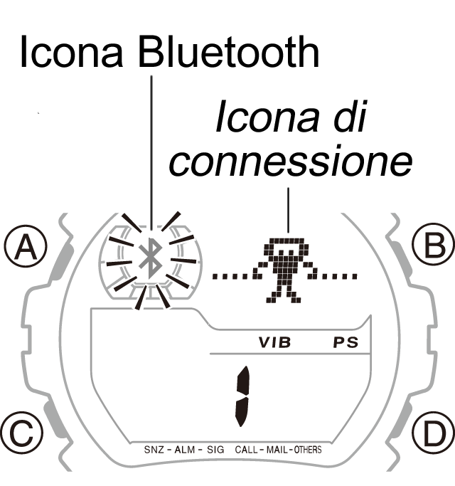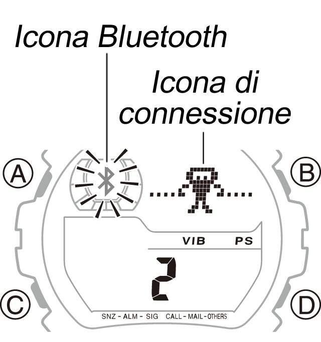 L'orologio torna al modo di indicazione dell'ora con l'icona Bluetooth visualizzata (non lampeggiante).