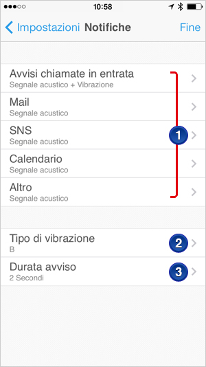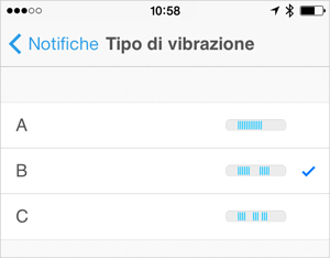 2Consente di specificare il tipo di vibrazione per tutti gli avvisi specificati con