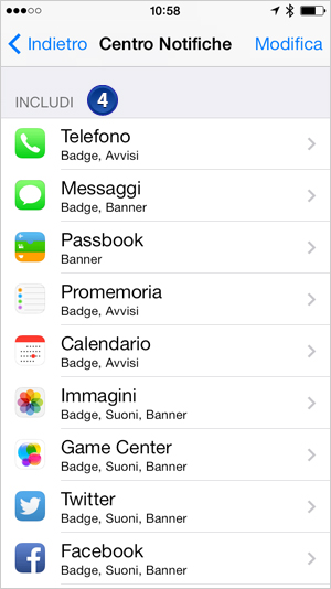 4Utilizzare la seguente impostazione sull'iPhone per attivare o disattivare ciascuna notifica: