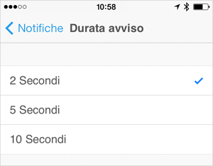 È possibile selezionare tra le seguenti durate dell'avviso: