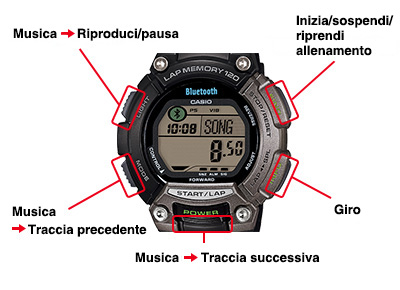 Di seguito è riportato un esempio di configurazione delle impostazioni dell'applicazione. L'assegnazione ai pulsanti dell'orologio delle funzioni utilizzate più spesso agevola e rende più efficiente il controllo dell'applicazione durante gli allenamenti.