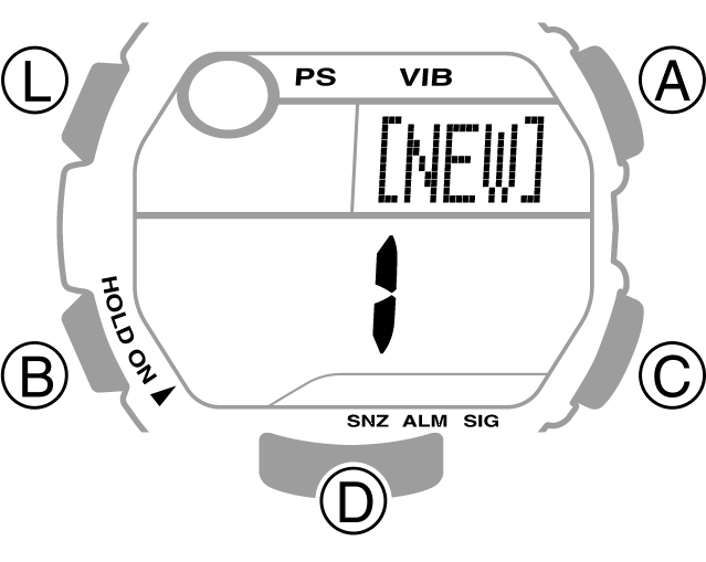 - Tenere premuto il pulsante A finché la dicitura del display dell'orologio non cambia da "CLEAR" a "[NEW]". Rilasciare A non appena viene visualizzata la dicitura "[NEW]".