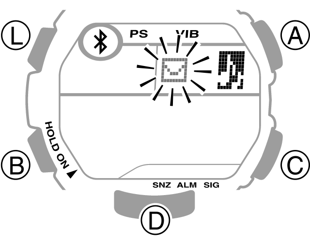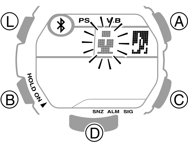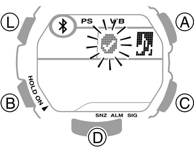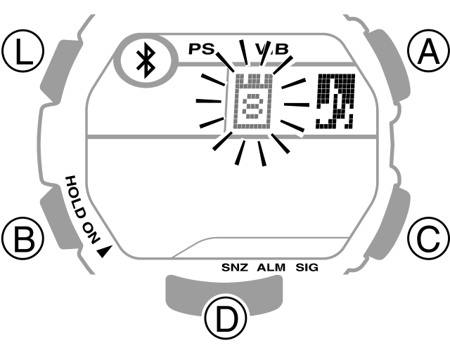 - Quando viene visualizzato l'indicatore di controllo, l'orologio è in modalità di controllo. In questo caso, tenere premuto il pulsante B per circa tre secondi per uscire dalla modalità di controllo. Eseguire quindi il passaggio 1 della procedura.