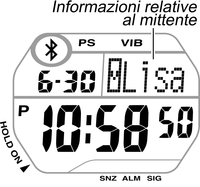 Secondo le impostazioni iniziali, l'orologio emette un segnale sonoro per due secondi e visualizza un'icona indicante il tipo di notifica. In seguito, verrà visualizzato un messaggio (testo, simboli, ecc.) relativo ai dettagli dell'evento.