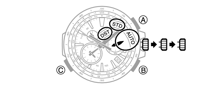 “AT (AUTO)” arrowR “STD” arrowR “DST”