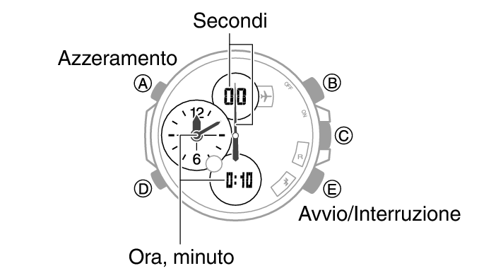 3.Premere (D) due volte per tornare al modo di indicazione dell’ora.