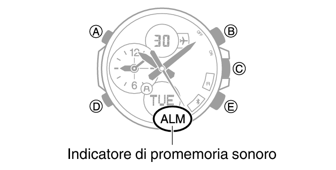 Pulsanti (B) e (E): vengono utilizzati per modificare le cifre attualmente selezionate (ora o minuti).