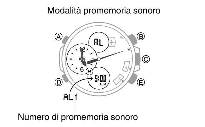 L’orologio emette un avviso quando viene raggiunto l’orario del promemoria sonoro.