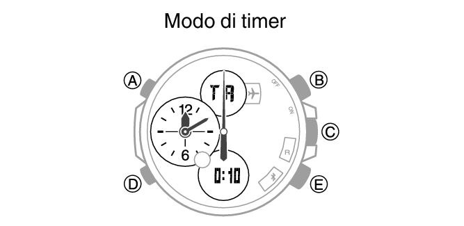 Eseguire questa procedura nel modo di timer. Utilizzare (D) per passare al modo di timer.