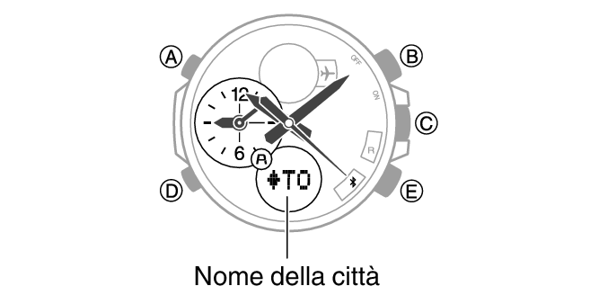 Tenere premuto (C) per circa 0,5 secondi finché la lancetta dei secondi si sposta su R. -