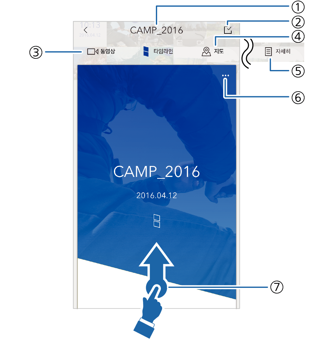 아래 절차에 따라 앨범에서 특정 일의 중요한 스냅사진 및 동영상 하이라이트를 선택하여 하이라이트 타임라인에 시간 순으로 배열해서 표시할 수 있습니다.