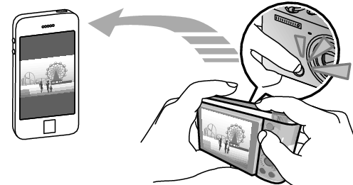 전면 셔터 버튼이 달린 일부 카메라의 경우 버튼을 누르기만 하면 재생 모드에서 표시된 스냅사진을 스마트폰으로 전송할 수 있습니다. 스마트폰으로 스냅사진을 전송한 다음 소셜 네트워킹 서비스에 업로드할 수 있습니다.