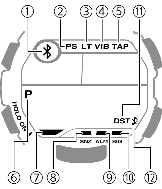 의미: 시계의 12시간 표시 시간이 오후입니다. - ⑦