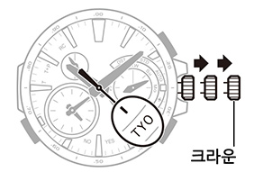 크라운을 돌려 시간대를 변경합니다.