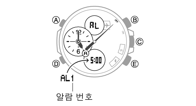 1.(E)를 눌러 구성할 알람 번호가 표시될 때까지 알람 번호([AL1] - [AL5])를 스크롤합니다.