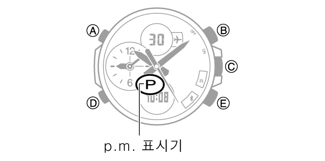 2.현재 설정([12H] 또는 [24H])이 디스플레이에서 깜박거릴 때까지 (D)를 4번 누릅니다.