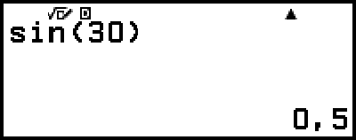 Voorbeeld: sin 30 = 0,5 (Hoekeenheid: Graden (D))