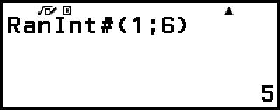 Deze functie genereert een pseudowillekeurig getal tussen 0,000 en 0,999. Het resultaat wordt als een breuk weergegeven wanneer Breuk in/uit geselecteerd is voor Invoer/Uitvoer in het menu INSTELLING.