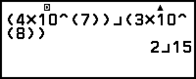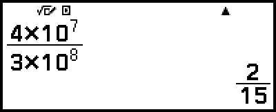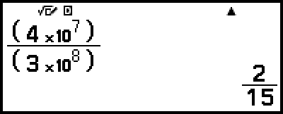 (Macht), Invoer/Uitvoer: Breuk in/uit), zorgt bij het uitvoeren van 4 × 107 ÷ 3 × 108 ervoor dat de berekening opeenvolgend van links naar rechts wordt uitgevoerd, wat een ander berekeningsresultaat oplevert dan dat in het bovenstaande voorbeeld (met breuken). Om hetzelfde berekeningsresultaat te krijgen, moet elke term tussen haakjes staan: (4 × 107) ÷ (3 × 108).