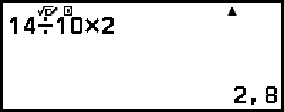 Voorbeeld: Als u per vergissing 14 ÷ 0 × 2 invoert in plaats van 14 ÷ 10 × 2