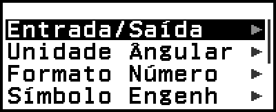 | Def. do Sistema | Inclui itens de menu para configurar as definições de operações da calculadora, como o ajuste de contraste. |