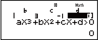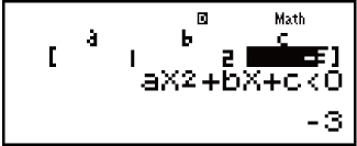 Para resolver x2 + 2x - 3 < 0, por exemplo, insira os coeficientes a = 1, b = 2, c = -3 pressionando 1