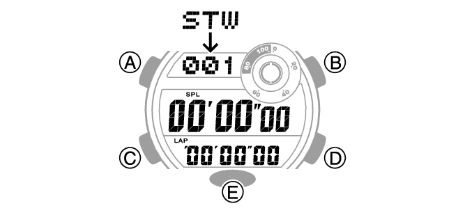 O cronômetro mede o tempo transcorrido em unidades de 1/100 segundo para a primeira hora e, depois em unidades de 1 segundo totalizando até 24 horas.