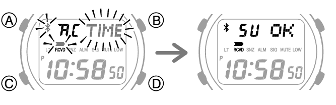 Registra sua latitude, longitude e data e hora atuais na memória do telefone, além de exibir [OK] no relógio.