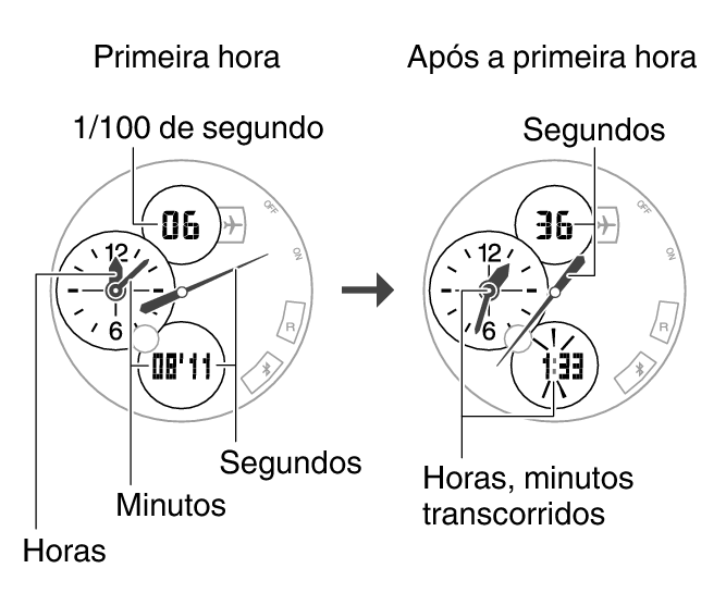 3.Pressione (D) três vezes para retornar ao Modo de indicação das horas.