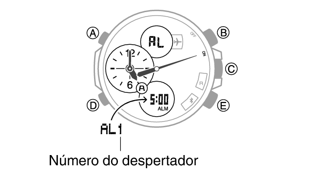 1.Pressione (E) para navegar pelos números do despertador até que seja exibido o número do despertador que você deseja configurar.