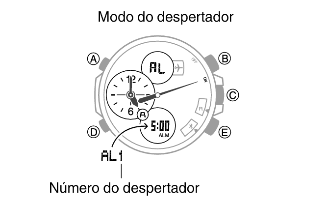 O relógio executa uma operação de alerta quando a hora do despertador é atingida.