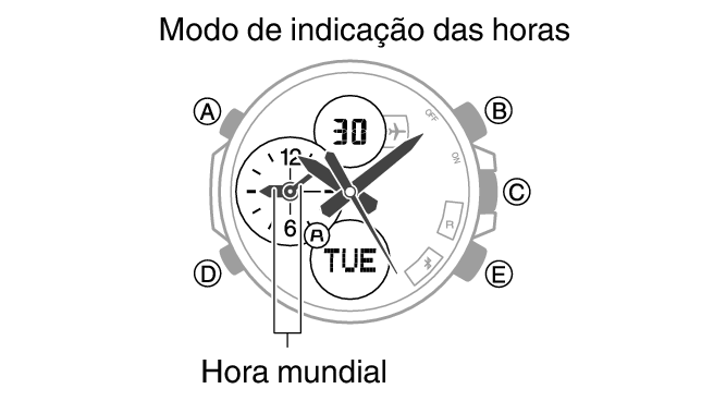Execute este procedimento no Modo de indicação das horas. Use (D) para navegar ao Modo de indicação das horas.
